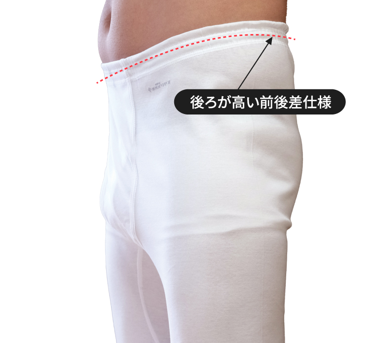 後ろが長くなっているのでかがんでも腰が出にくくなっています