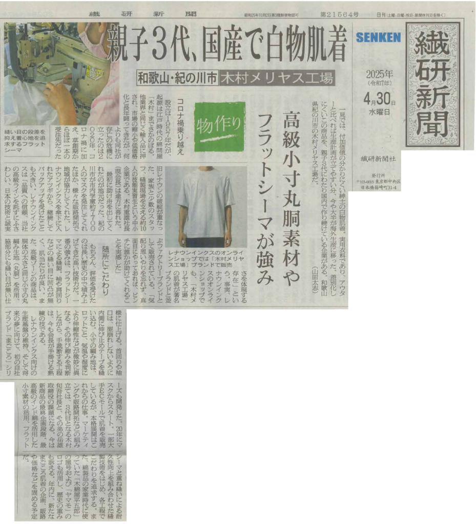 2025 年4月30日(水)の繊研新聞の一面に掲載されました。